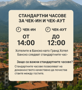 Стандартни часове за чек-ин и чек-аут в хотелите в Банско