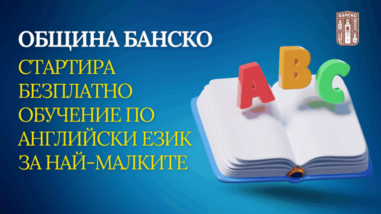 Община Банско стартира безплатно обучение по английски език за децата от III и IV възрастови групи в детските градини, както и за учениците от I клас в училищата на територията на гр. Банско, гр. Добринище и район Места.