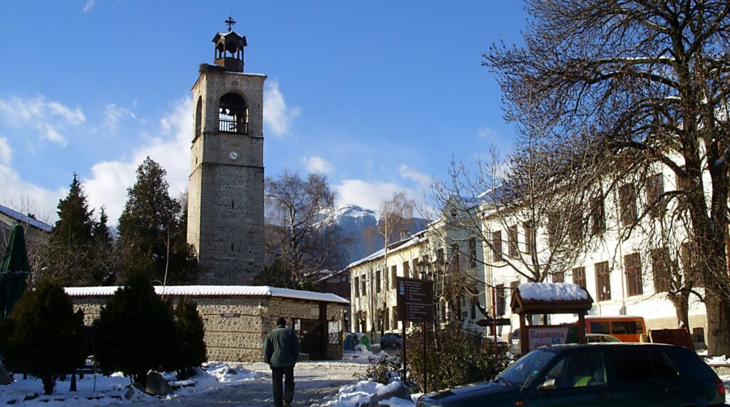 The tower on the hill in Razlog Panoramic Alley “Steps”