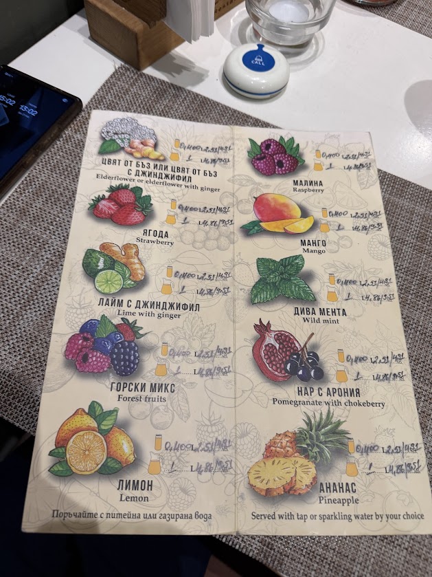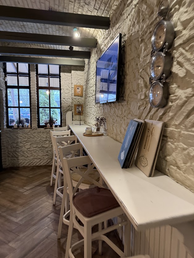 Освен богатия избор на храна, ресторантът разполага и с впечатляваща селекция от вина и авторски коктейли, които са перфектното допълнение към всяко ястие. Десертите се приготвят на място и са финалният щрих на едно пълноценно гурме преживяване.