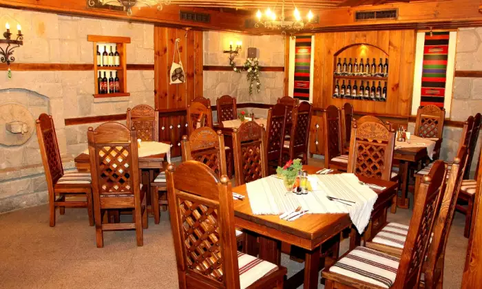 Заведението разполага с три зали — основна, винарна и рибен салон, всяка от които има камина. За забавление, музикантите от група Бански Мерак редовно изпълняват живи музикални програми, а в определени дни има и фолклорна програма с ансамбъл Луди Млади.​