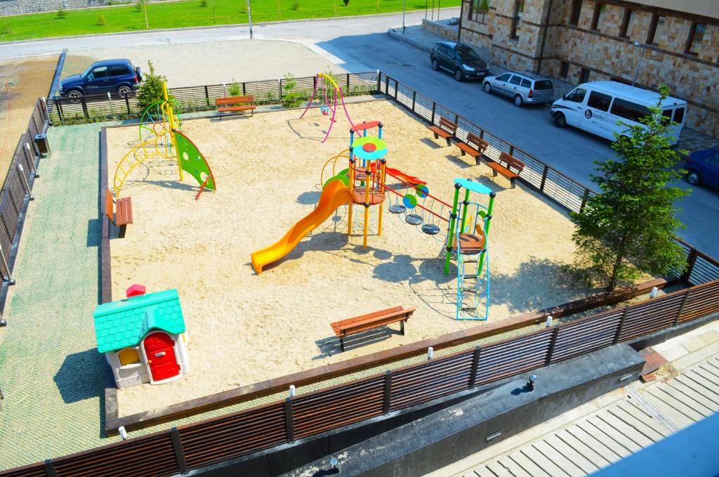 Сградата е част от голям апартхотелски комплекс, построен през 2007 г. и обновяван ежегодно, с последен ремонт през 2023 г. Комплексът се състои от две свързани сгради, всяка с пет етажа и общо 4 асансьора, осигуряващи удобен достъп до всички нива.