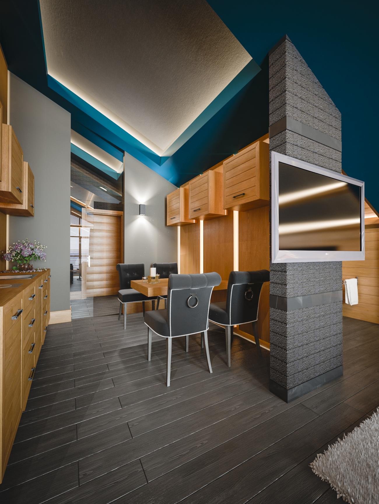 Сградата е с около 5 етажа. Има няколко входа, като структурата и дизайнът отговарят на стандартите за луксозна планинска архитектура.