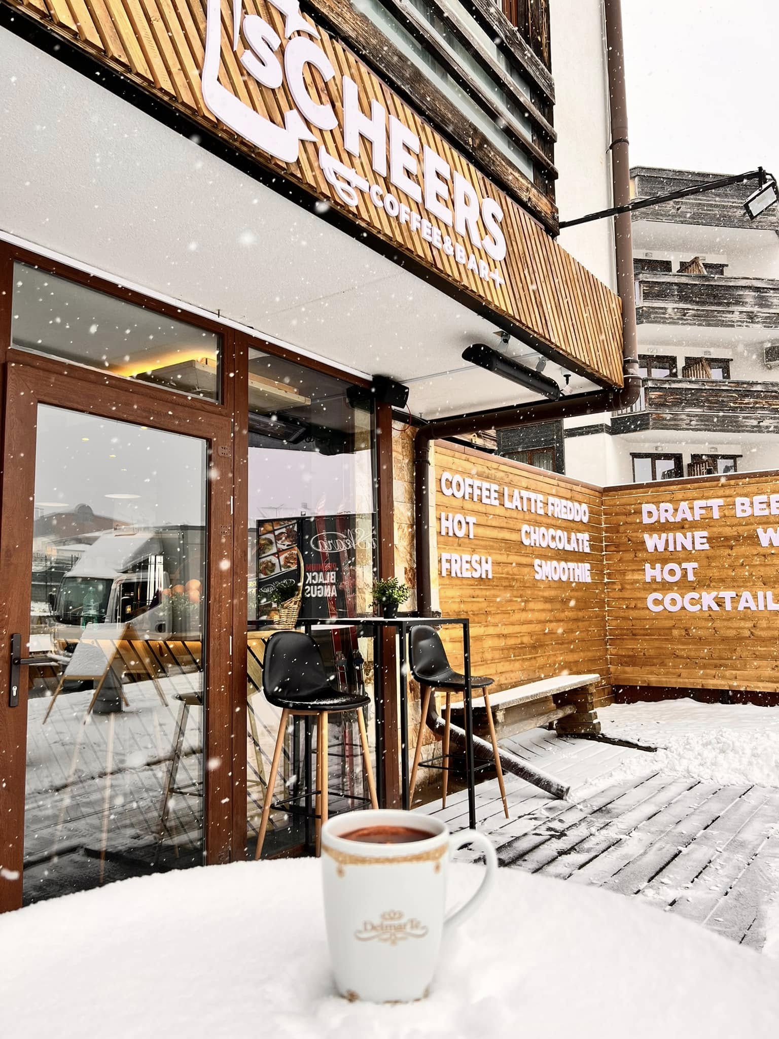 sCHEERS предлага удобно обслужване с позитивен персонал, възможност за ползване на дебитни карти и места на открито. Екипът се грижи гостите да се чувстват специални, а локацията спомага за създаване на сплотена общност. Освен кафе и напитки, има и спортни услуги като ски и сноуборд инструкции, които са особено удобни за туристите в зимния сезон.